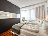 Dort befindet sich ein Doppelbett mit hochwertigen Matratzen sowie ein großzügiger Kleiderschrank. Aus einem gemütlichen